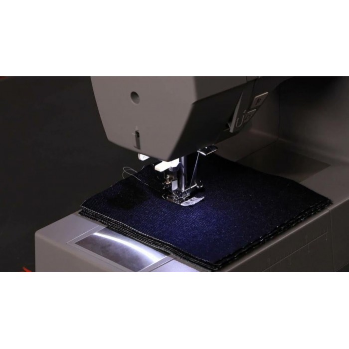 ماكينة خياطة هي ماكينة قوية وعملية، توفر سرعة عالية وأداء متميز. تتميز بإطار معدني قوي، مما يجعلها مثالية لخياطة الأقمشة السميكة والمشاريع الكبيرة.